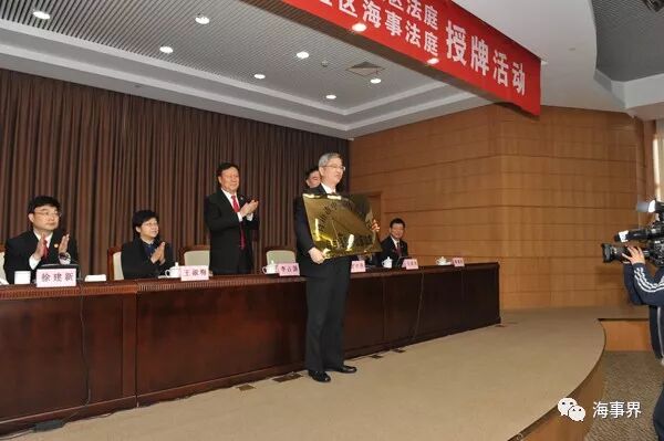 随着浙江省舟山市中级人民法院院长孙公幸、宁波海事法院院长陈惠明接过牌匾,两个法庭挂牌正式运作。